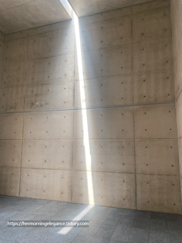 지난달 입구에서 가까운곳에 새로운 전시공간이 오픈했다고 합니다. 빛의 공간이라는 이름이 붙은 곳으로, 이 공간 역시 건축가 안도타다오가 설계했습니다. 갈라진 틈으로 빛이 새어들어오는 게 신비롭게 보였는데 사진 찍기는 생각보다 어렵더라고요. 들어가는 입구부터 공간 자체가 주는 느낌이 독특해서 좋았어요.
