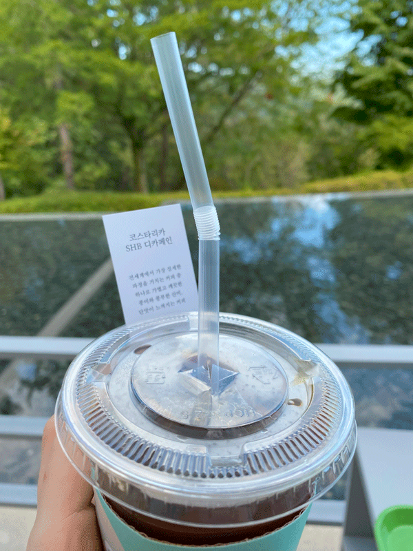 그래서 물과 나무 청량한 하늘이 어우러진 뮤지엄산 카페는 꼭 들러야 제맛이죠. 케익류와 커피 등 다양한 메뉴가 있었습니다. 가격은 좀 비쌌지만 박이추의 스페셜티 커피가 참 맛있더라고요. 같이 입장료를 구매하면 스페셜티 커피 할인권을 같이 주니까요. 카페 이용하신다면 잊지 말고 사용해 보세요.