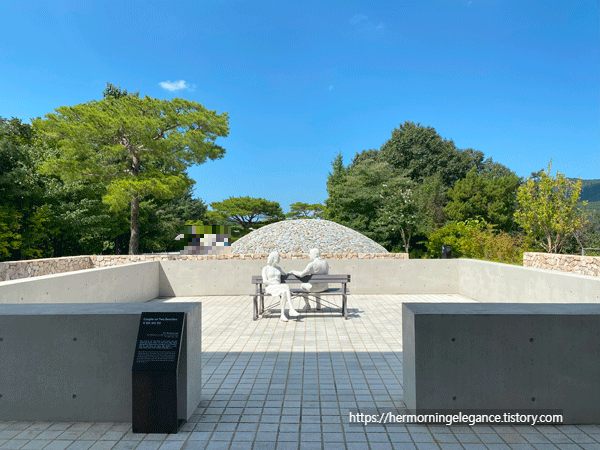 입구로 들어가면 플라워가든과 워터가든으로 이어집니다. 넓은 공간에 돌과 나무 조각품들이 잘 어우러져 있어요. 여름에 다녀왔을 때 꽃들은 많지 않았는데 가을이 오고, 다시 봄이오면 완전히 다른 느낌을 주는 공간이 펼쳐질 것 같습니다. 이번이 두 번째 방문인데, 명상관과 제임스터렐관은 선택하지 않고 야외공간을 주로 관람하고 돌아왔어요. 날씨가 좋아서 더 기분 좋은 관람이 되었네요. 뮤지엄산은 곳곳에 포토스팟도 아주 많아서 사진 찍는 거 좋아하신다면 추천하는 곳입니다.