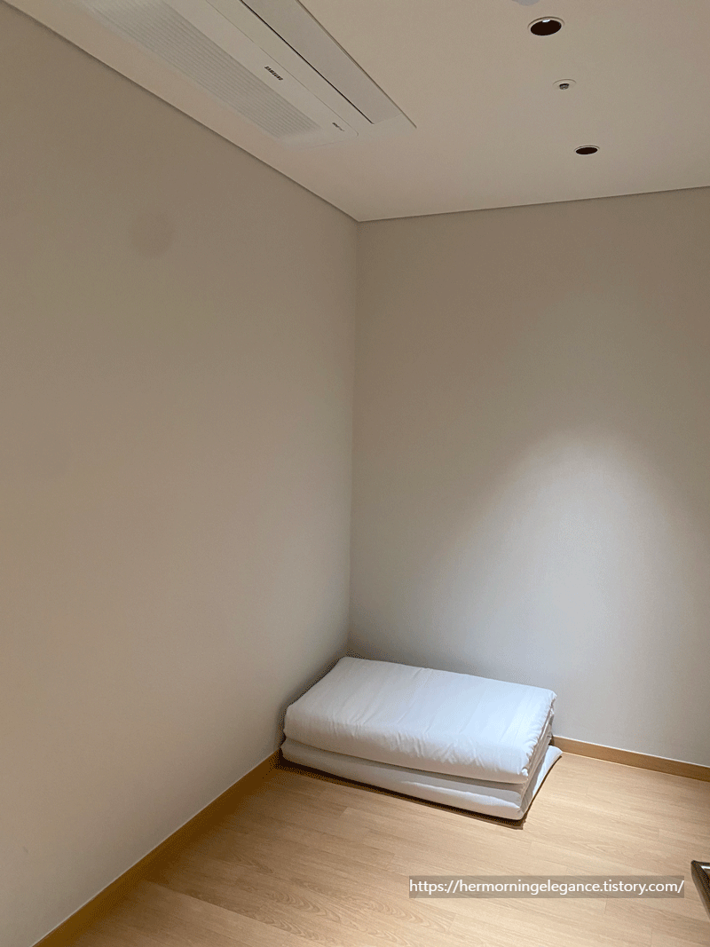 한쪽방엔 더블침대가 있고, 안쪽에 화장실이 있어요. 작지만 발코니도 있어서 나가면 청초호 뷰를 볼 수 있었어요. 다른 방은 온돌룸으로 벽장에 이불이 2세트 있습니다. 온돌룸은 그리 넓지는 않지만 2명이서 자기에 적당한 크기입니다. 방방마다 시스템 에어컨이 달려 있어서 여름에도 쾌적하게 사용할 수 있을 것 같아요.