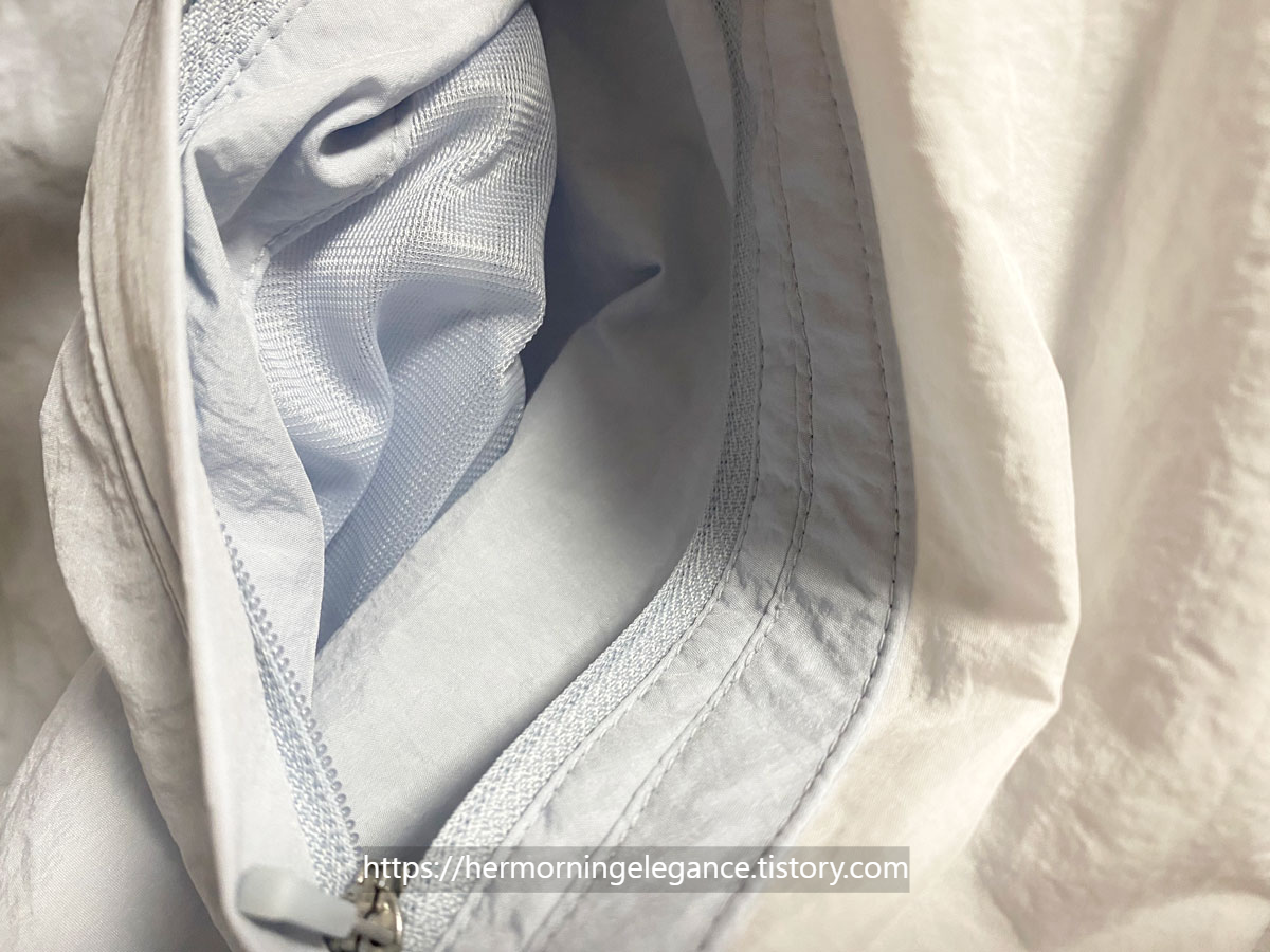 나일론과 폴리에스터 소재로 물세탁 가능한것도 아주 좋습니다. 운동복으로도 입는 제품이니 당연한 걸 수도 있지만 빨래 자주 하는 사람으로서 구매할 때 물세탁 가능한지 확인하는 편입니다. 드라이클리닝은 너무 비싸니까요.