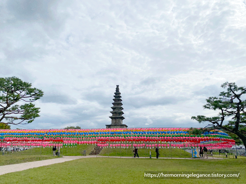 계단을 올라가면 높은 탑이 공원한가운데에 있습니다. 행사를 한지 얼마 안됐는지 연등이 가득 달려있었어요.