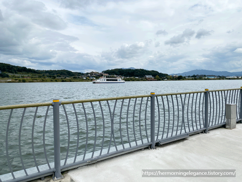 공원에서 바라보면 유람선이 다니고 있는걸 볼 수 있는데요. 중앙탑공원에서 조금 떨어진 충주체험관광센터에서 전기와 태양광을 이용한 친환경 일렉트릭 유람선을 이용할 수 있어요.