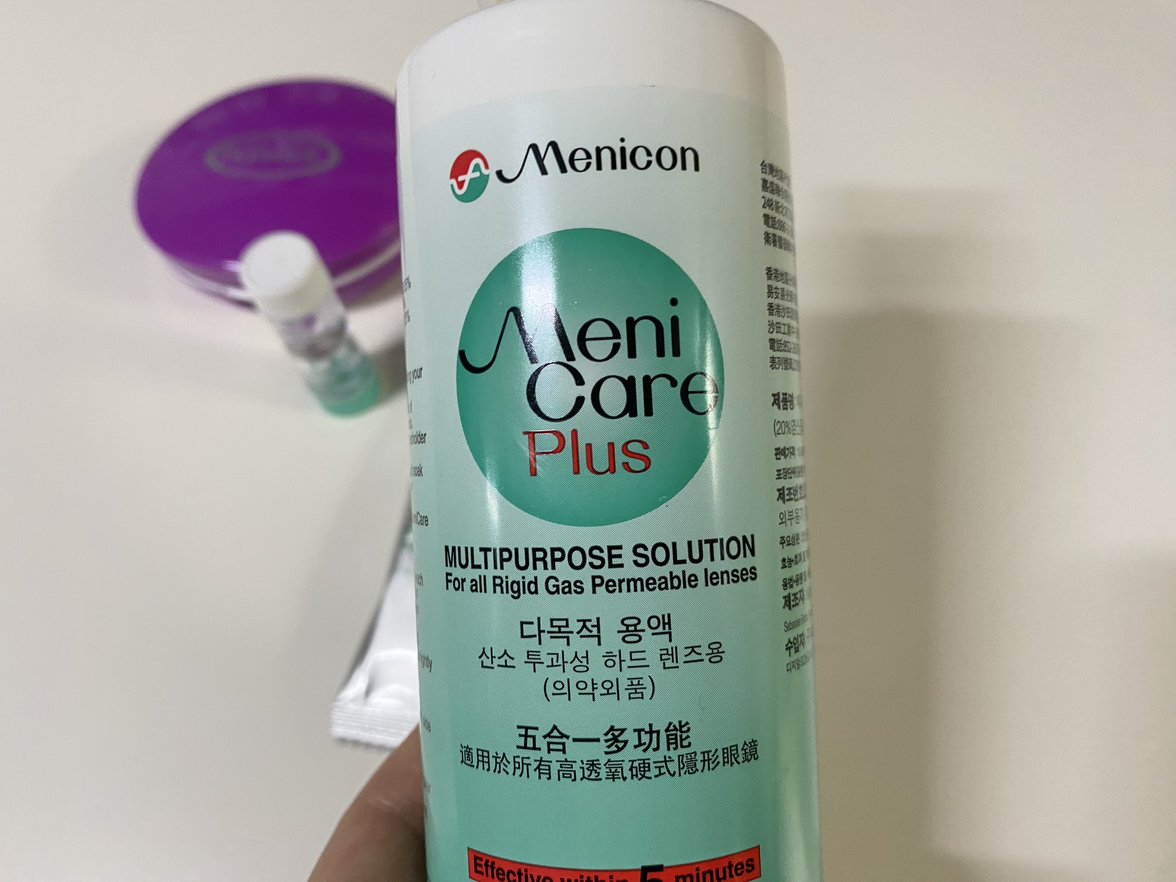 요즘에는 아침에 렌즈를 빼고 나서는 매니케어 제품을 사용합니다. 세척, 헹굼, 보존을 하나로 할 수 있어서 편해요. 자기전에 렌즈를 착용하기 전에는 물로 한번 헹궈서 사용하는데요. 병원에서는 수돗물로 씻어주긴 했는데 뭔가 찝찝하기도 하고 해서 일회용 생리식염수를 사용합니다. 그렇지만 하드렌즈와 마찬가지로 수돗물로 헹궈도 상관없는 것 같아요. 그리고 렌즈를 착용할 땐 인공눈물을 넉넉히 넣어주는 편입니다. 아무래도 렌즈를 끼고 있으면 눈이 약간 건조한 것 같은 느낌이 들어요.