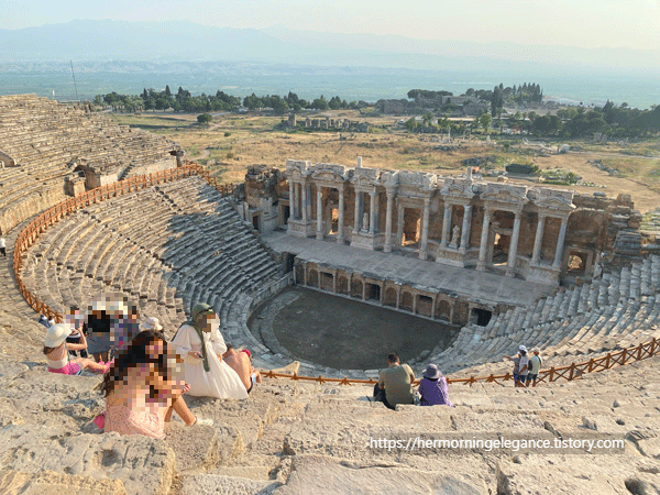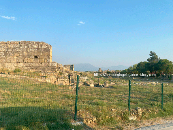 카트를 타고 파묵칼레 온천 주변에 있는 유적지를 둘러보는 투어이다. 카트를 타고 이동하면서 주요 포인트 몇곳에 내려 가이드의 설명과 사진 찍을 정도의 시간을 보낸다. 이 유적지는 파묵칼레 온천을 이용했던 로마인들이 살았던 마을의 흔적이 남아있는 것이라고 한다. 원형극장은 보존이 비교적 잘 되어 있었고, 다른 곳들은 기둥들이나 아치들이 남아있었던 모습만 기억난다. 둘러보고 마지막 온천에 도착하기까지 대략 한 시간 정도 걸렸다.