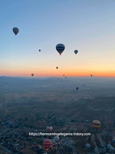 누군가는 내 사진을 건지고 싶으면, 열기구를 탈게 아니라 열기구가 잘 보이는 명당에 가라고 했다. 그 말도 일리는 있다. 열기구 안에서 찍은 사진들은 거의 건질만한 게 없었다. 좁고, 이동이 쉽지 않기 때문이다. 그래도! 열기구 투어는 하는 게 더 낫다. 안 했으면 후회했을 뻔했음. 열기구가 하나둘씩 떠오르고 저 멀리 하늘이 밝아지며 해가 떠오르는 그 고요한 풍경은 튀르키예 여행 중 잊지 못할 순간이었기 때문에. 비현실적으로 좋았던!